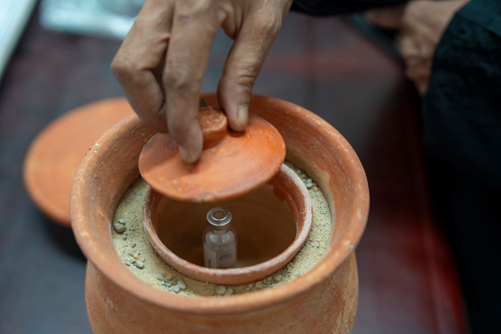 工作人员会给患者提供特质的陶罐——大陶罐套着小陶罐。这样的储存方式既提供了一个避光的环境,也可以适当降低温度,为胰岛素的储存创造合适的环境,从而让患者有药可用。